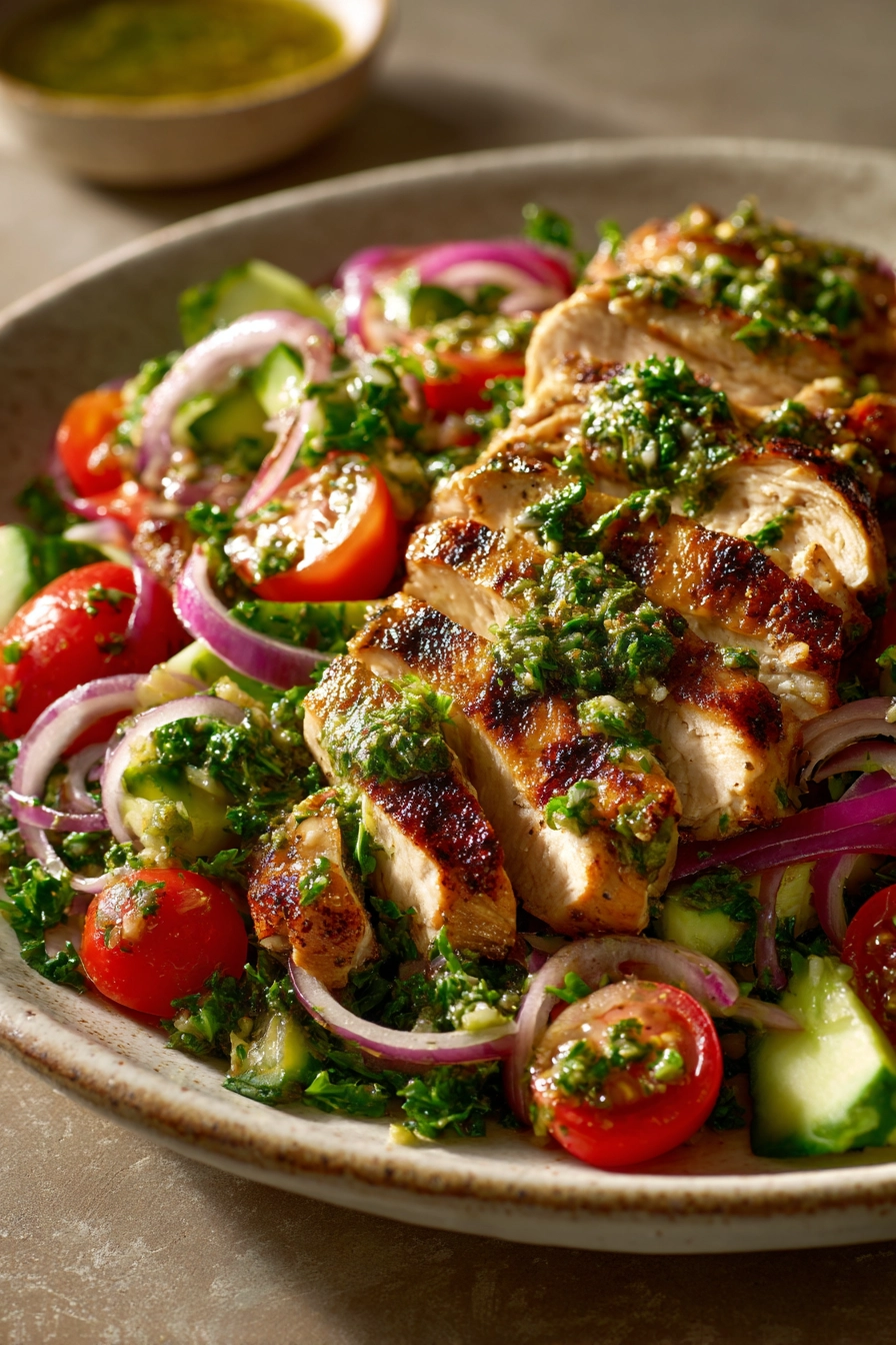 I still remember the first time I made this salad. The moment I sliced into the tender, spiced chicken, the aroma of cumin, coriander, and smoked paprika filled the kitchen like a warm invitation. The bright green chimichurri, flecked with fresh herbs and a hint of garlic, clung to the juicy chicken and crisp veggies, waking up every bite. As I took my first forkful, the tangy dressing danced on my tongue, mingling with the subtle heat from the cayenne. It wasn’t just a salad; it was a small celebration of flavors and textures that felt like a secret well-kept until now.