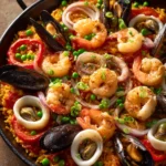 What if I don’t have a paella pan? A wide, shallow skillet works well to spread the rice evenly and cook the seafood properly.
