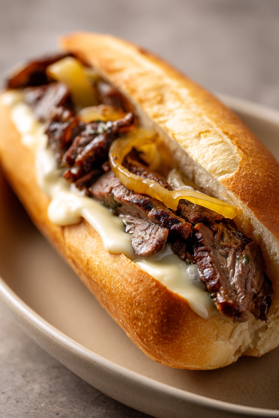 Discover the comforting sizzle of tender ribeye, caramelized onions, and melted cheese all nestled in a warm hoagie roll. This classic Philly Cheesesteak brings that satisfying moment straight to your kitchen.