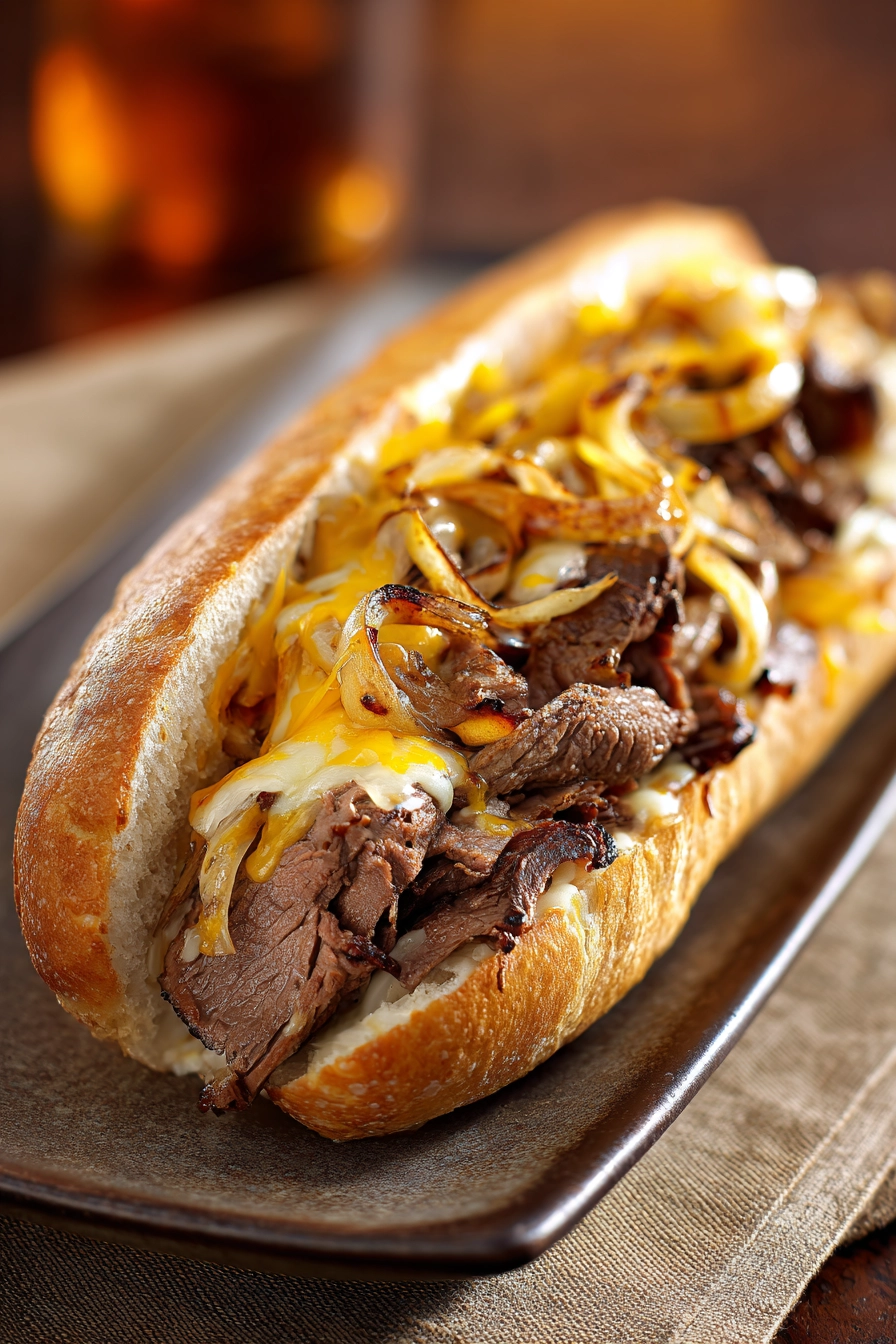 This Philly Cheesesteak brings together juicy ribeye, caramelized onions, and melted provolone for a sandwich that comforts and excites every bite.