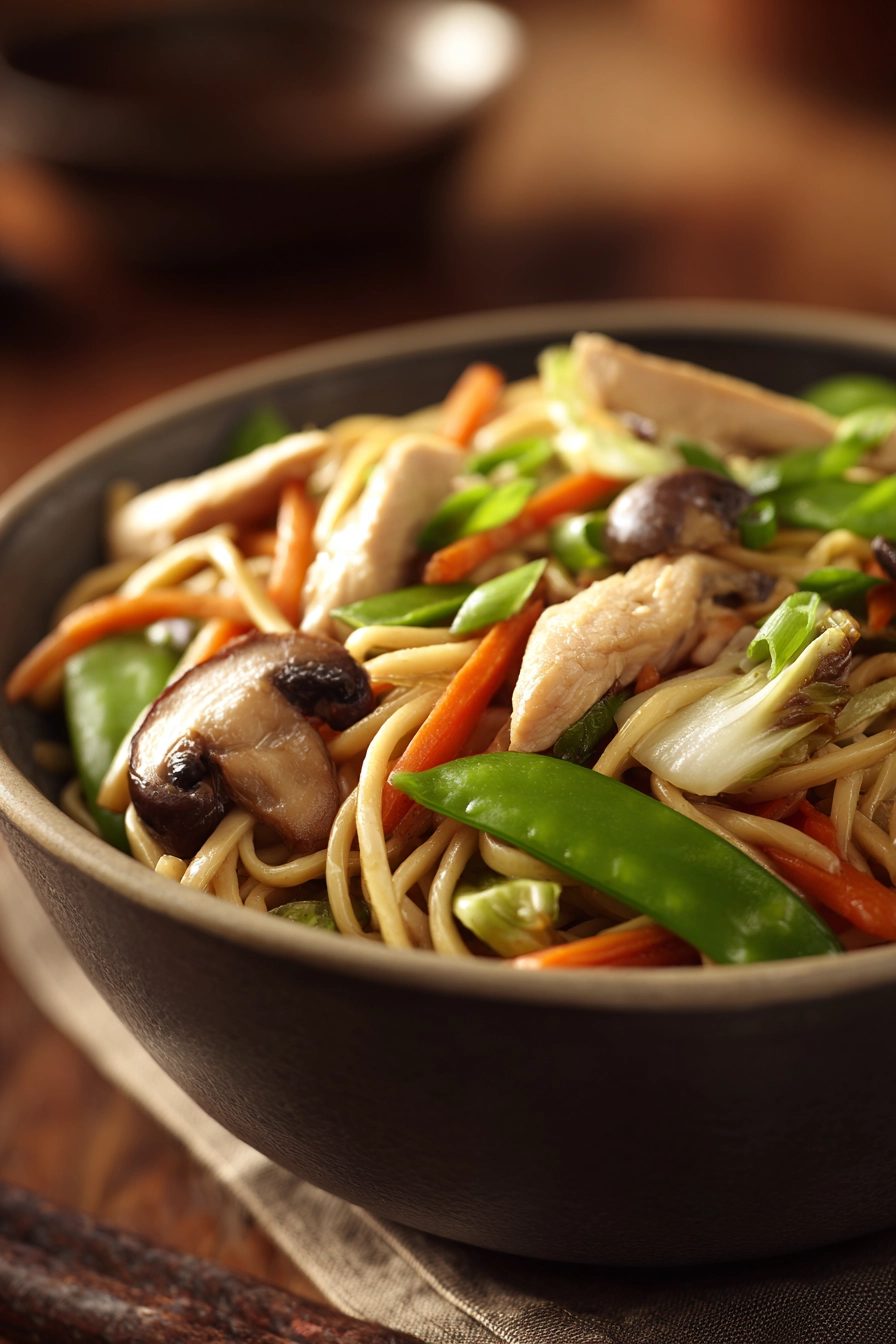 Experience the comforting flavors of tender chicken, crisp veggies, and savory noodles all in one quick stir-fry that feels like home.