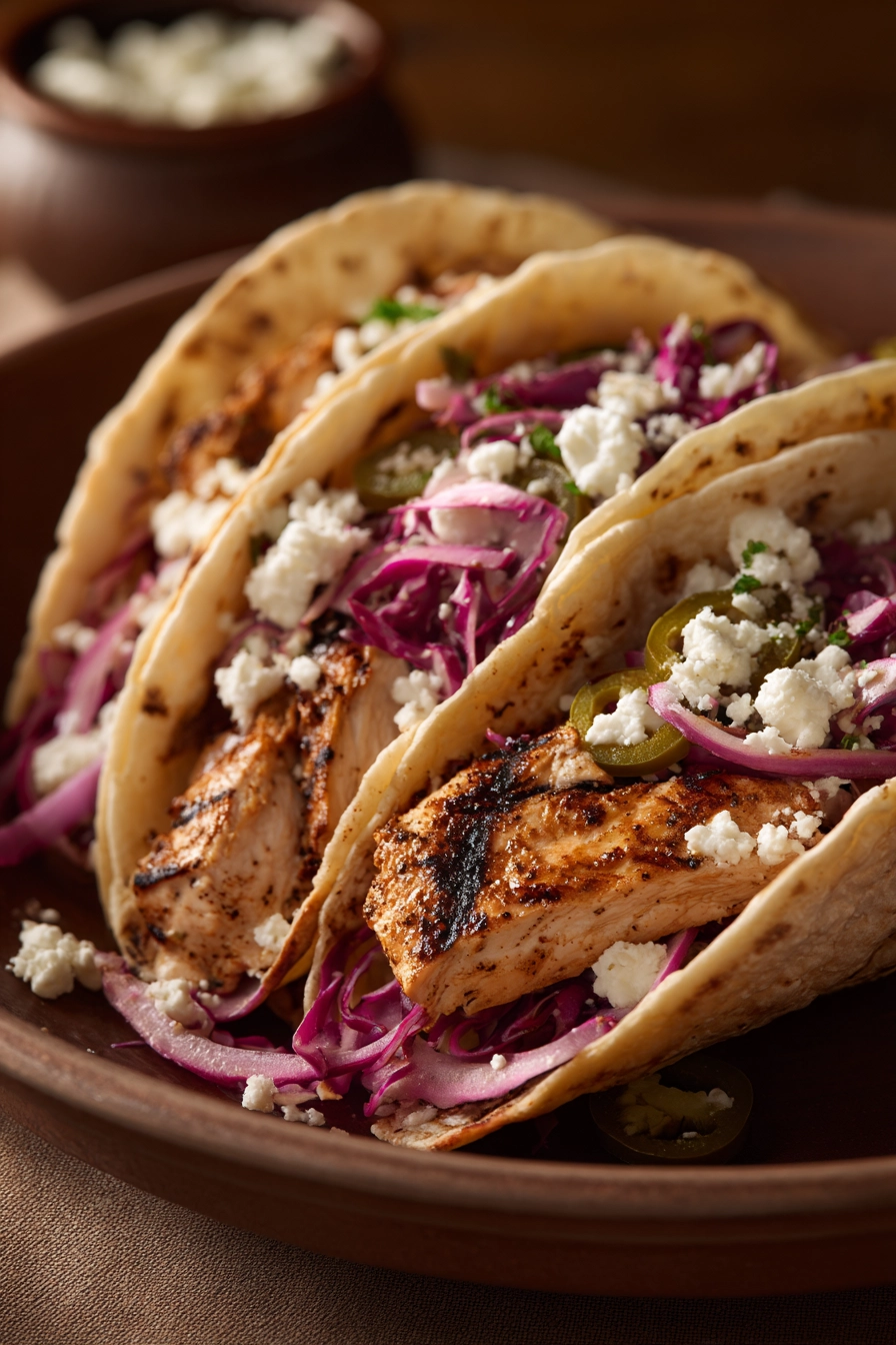 Savor the vibrant flavors of juicy grilled chicken wrapped in warm tortillas, topped with fresh, crunchy ingredients for a meal that feels like a celebration every time.